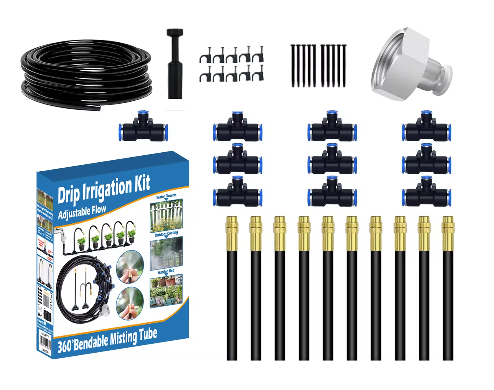 Our Drip Irrigation Kit with Adjustable Flow features an atomization range of 0.5-1 meter and a water volume of 18-60 liters per hour. With a working pressure of 2-15Bar, it efficiently and effectively waters your garden while providing a refreshing spray for children and seniors on hot afternoons. The flexible nozzle can be bent 360 degrees and fixed to direct the spray exactly where you need it. With the spray adjusted to your desired state, the output can reach up to 72 liters per hour. The durable PE pipe can withstand pressure of up to 10kg and the high-quality copper materials ensure a long service life and excellent atomization. Upgrade your gardening game with this must-have kit! Transform your garden into a refreshing oasis with our Drip Irrigation Kit with Adjustable Flow! Featuring a customizable atomization range, flexible nozzle, and durable construction, this kit delivers efficient and effective watering for your plants while also providing a refreshing spray for hot afternoons. It's perfect for keeping children and seniors cool and comfortable while also keeping your garden lush and beautiful. Plus, with a high water volume and long service life, this kit is a game-changer for any gardener. Don't miss out on the benefits of this must-have kit!