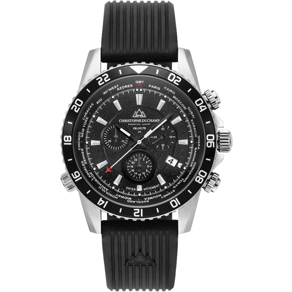 The Velocite V1 series is designed with frequent fliers in mind. A single twist of the inner bezel sets this magnificent timepiece to another time zone. This revolutionary twist on this pilot-style watch will have you reaching for the skies. Velocite combines perpetual luxury with an eternal need for speed.
