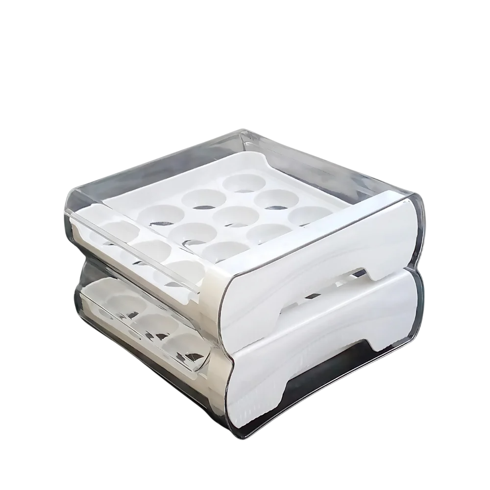 Upgrade your fridge game with the EggVault 32—a sleek, double-layer drawer egg storage system crafted for maximum capacity and zero clutter.