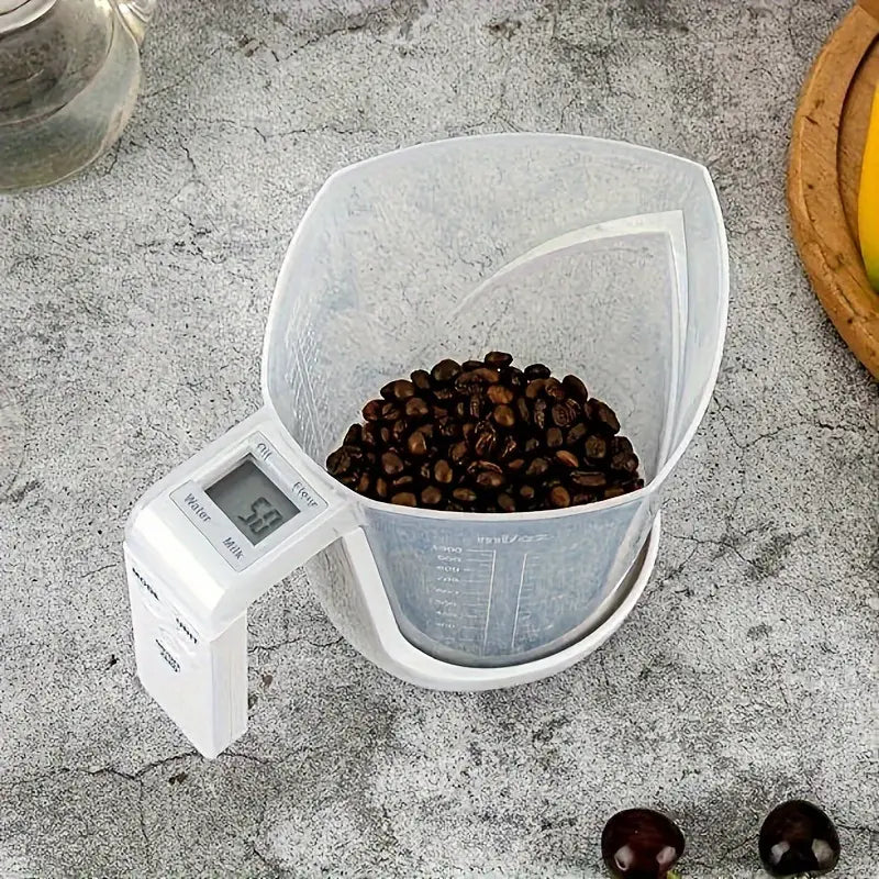 Equipped with a clear LCD display and intuitive controls, it features multiple unit conversions (g, lb:oz, ml, fl'oz, cup), a tare/zero function for layered measurements, and automatic shut-off to preserve battery life. The integrated measuring cup allows you to pour, weigh, and measure in one seamless motion—no need for separate tools.