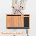 Work, browse, or stream in comfort with this versatile lap desk designed for adults. The spacious surface accommodates laptops up to 17 inches and includes a built-in wrist rest, mouse pad, and dedicated slots for your tablet and phone. Whether you're working from bed, lounging on the couch, or traveling, this desk offers ergonomic support and practical convenience.