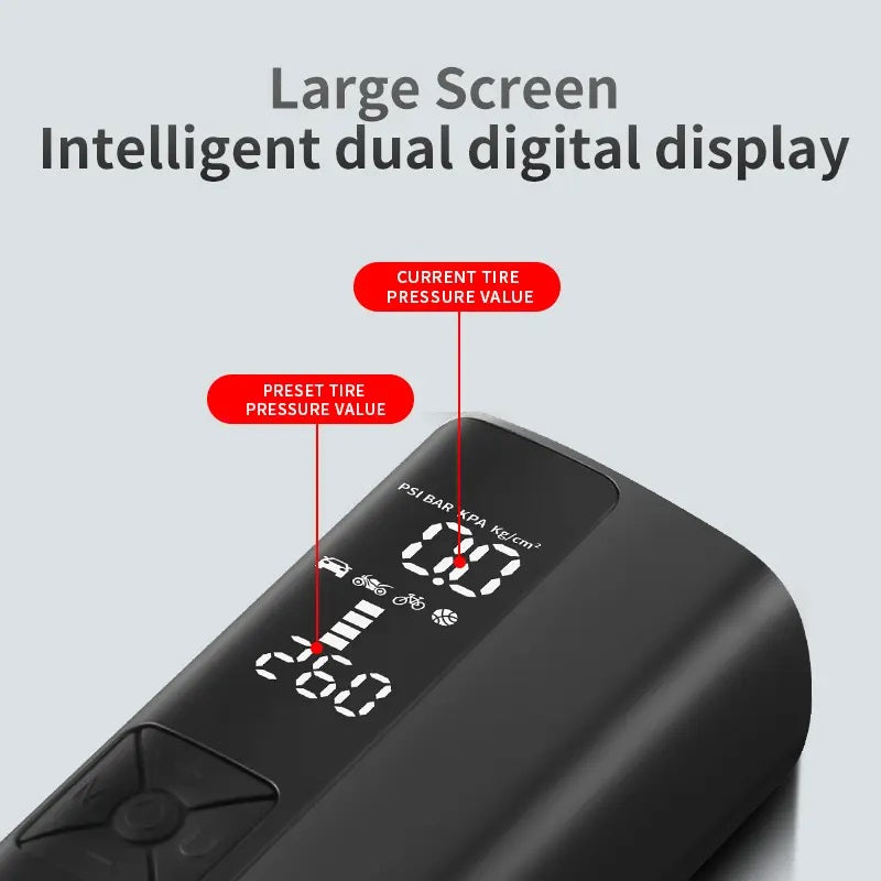 SIMPLE TO USE: The air pump with LCD digital display will display the current tire pressure after connecting the hose to the tire valve, so you can monitor the tire pressure at any time. When the inflation volume reaches the preset value, the air pump will automatically stop inflation, which can avoid over inflation. Support 4 unit switching: Kpa / Bar / Psi / Kgf, can be used in various scenarios.