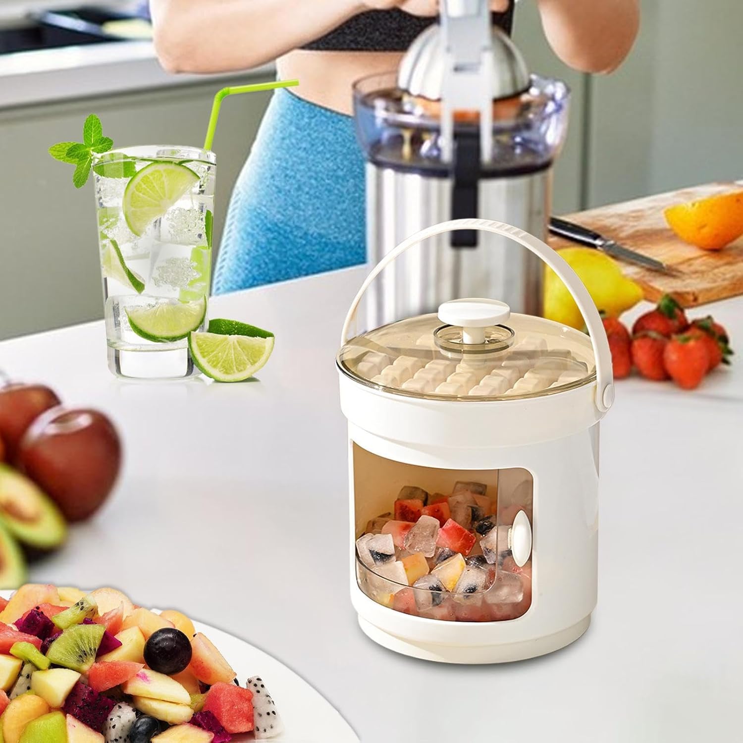 Designed for mobility, the bucket includes a portable handle and compact form factor that fits neatly on countertops or inside freezers. Whether you're hosting, hydrating, or meal prepping, this set keeps your ice clean, accessible, and ready to serve.