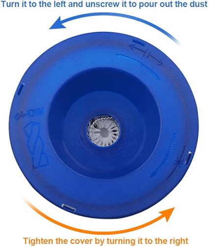 Buckle design to ensure that dust does not leak. Rotate it to the left to unscrew it to pour out the dust. Rotate to the right to tighten the cover.