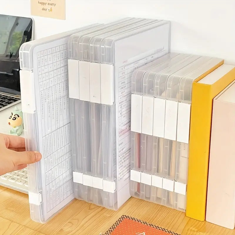 - Buckle Design & Clear Lid: Protect your files from dust, moisture, and other damages while keeping them secure and easily accessible.