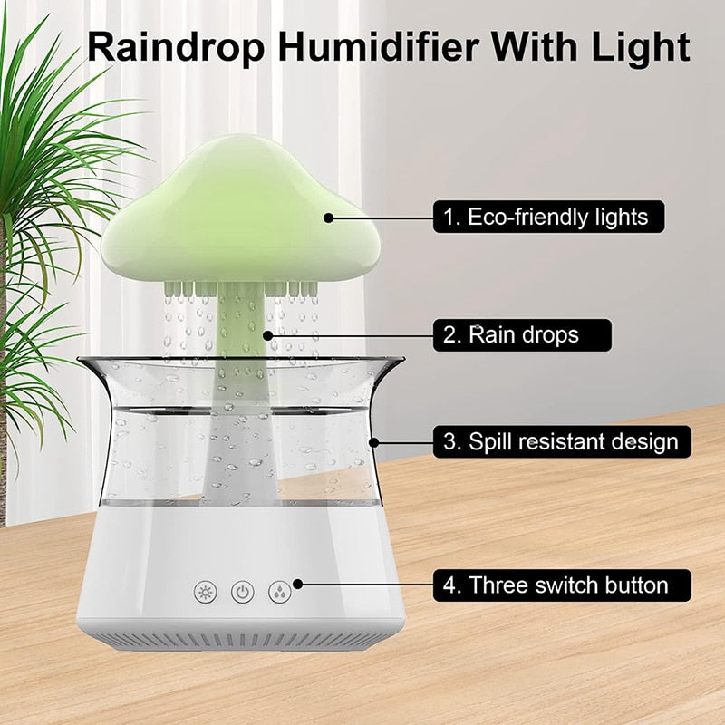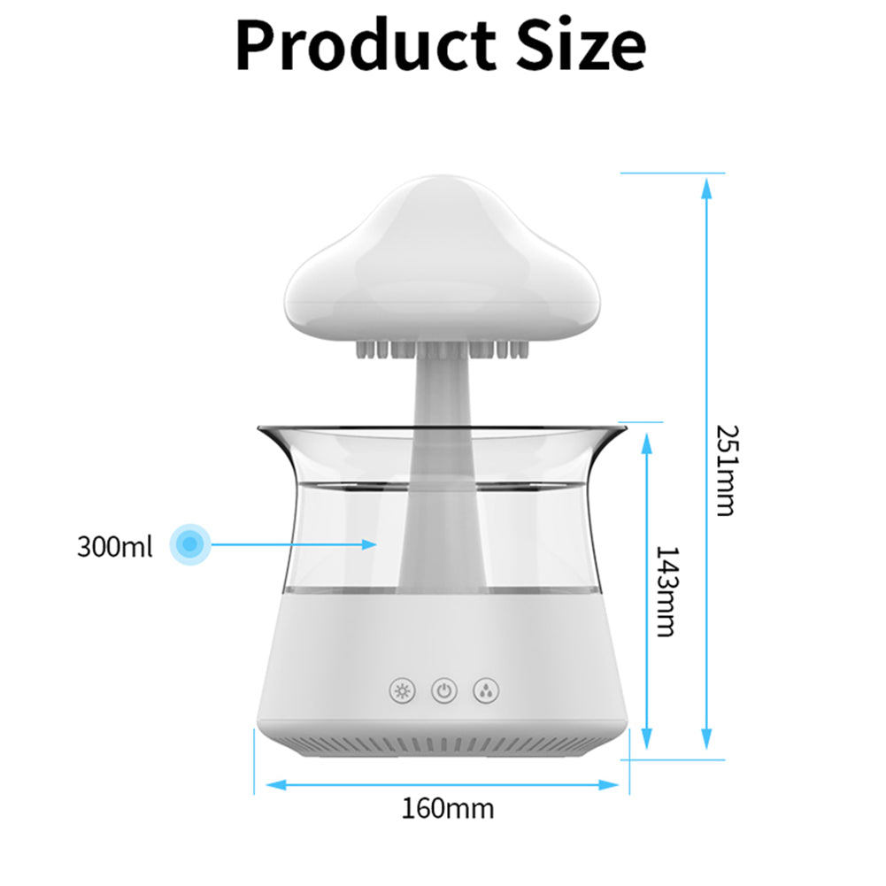 This sleek, modern cloud humidifier, with a raindrop pattern, adds a touch of nature to any living space. Add it to your home or office for improved air quality and to combat dry air, removing odors, soothing skin, and even relieving sore throats!Various Colour Settings: Press and hold the button to adjust between 7 vibrant LED lights, water, and light modes. Keep it on breathe mode or set it to always on. With a quick click, you can adjust the amount of simulated raindrops and spray water.Diffusion & Humidification: Enjoy a calming atmosphere with the cloud humidifier's soft simulated raindrops sound and its ability to humidify dry air without adding too much moisture. It's whisper-quiet operation won't disturb your rest or work. This raindrop design serves as a reminder of nature's calming balance.