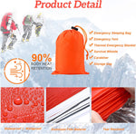 - Multi-purpose tool: this emergency survival shelter set is waterproof, windproof and moisture-proof, helpful in wet, humid, rainy, and cold weather, the emergency tent and sleeping bag and the blanket are designed to reflect your body heat to keep your warm, making you feel better in the bad weather