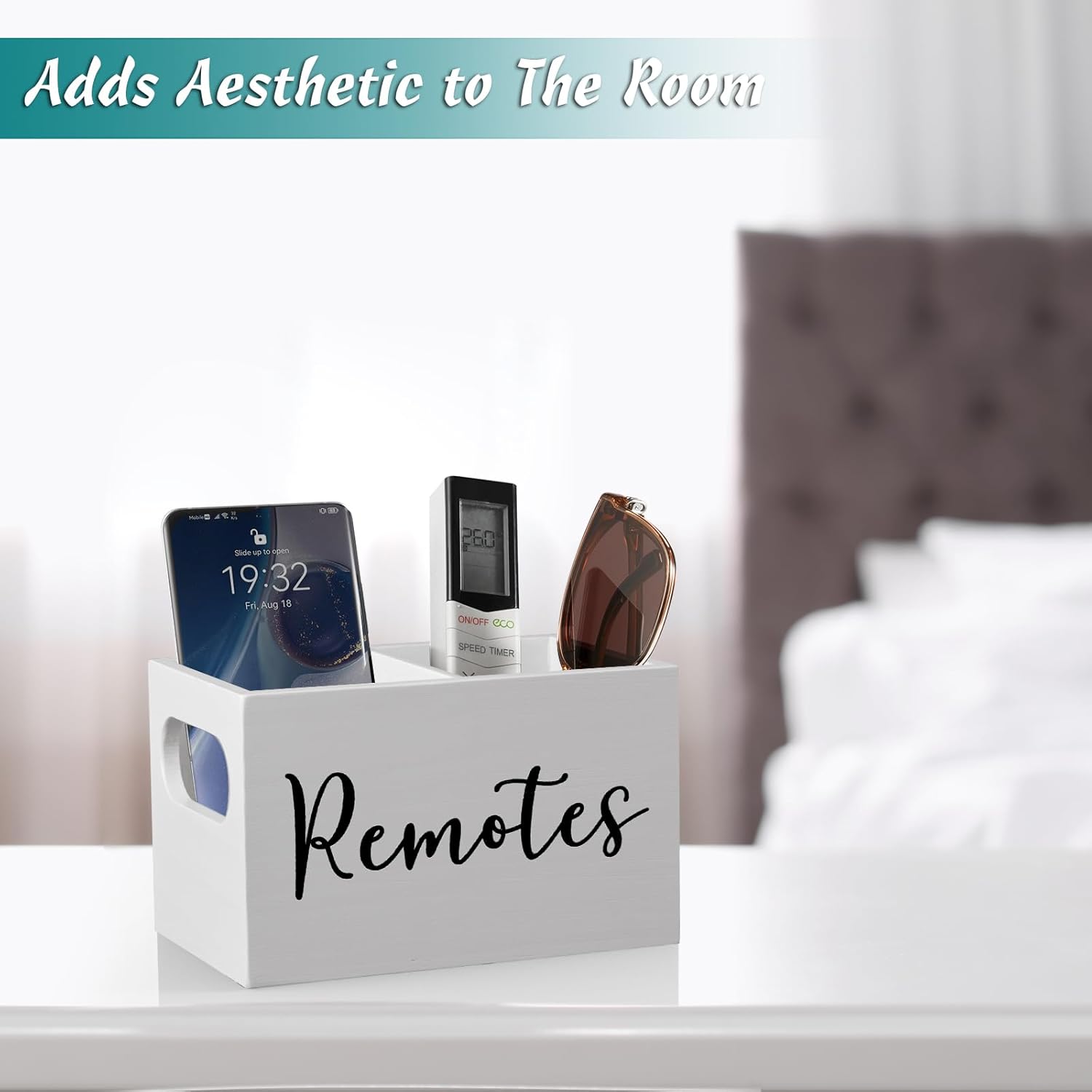 Beyond remotes, this versatile organizer is ideal for storing glasses, pens, cosmetics, name cards, and more. Its open-top design ensures quick access, while the natural wood finish adds farmhouse charm to any room.
